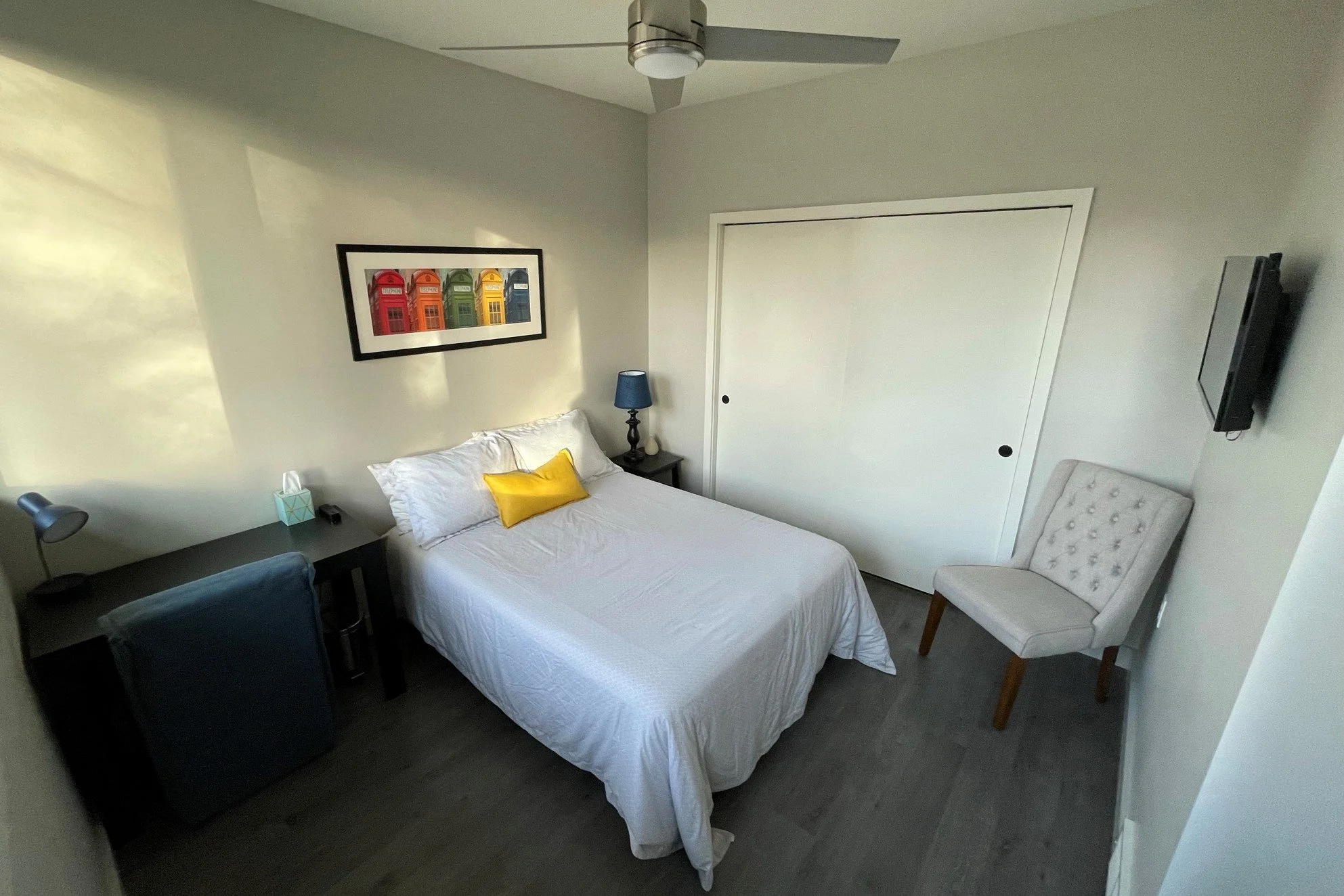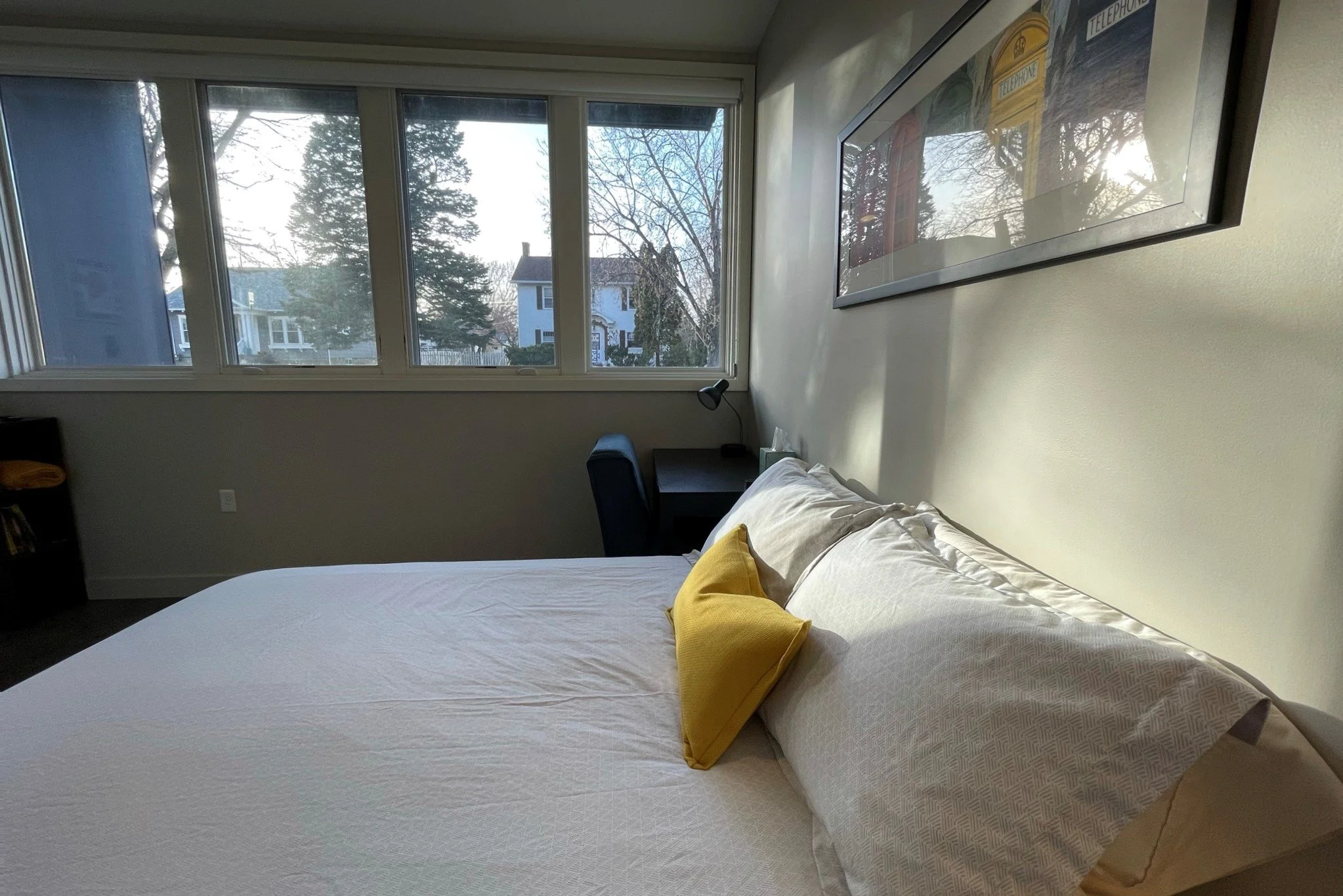 There’s a large closet and private non-attached bathroom just down the hall. The room has west facing windows with blackout curtains.