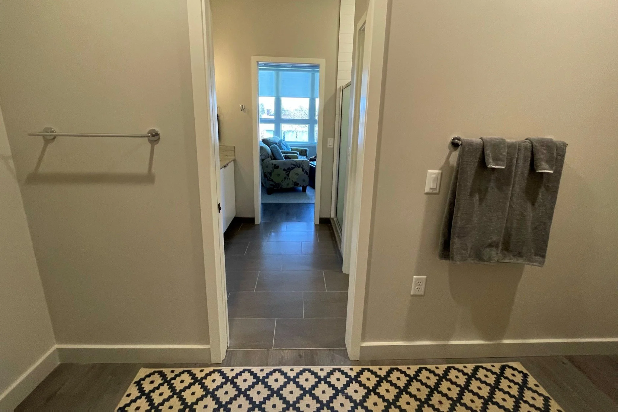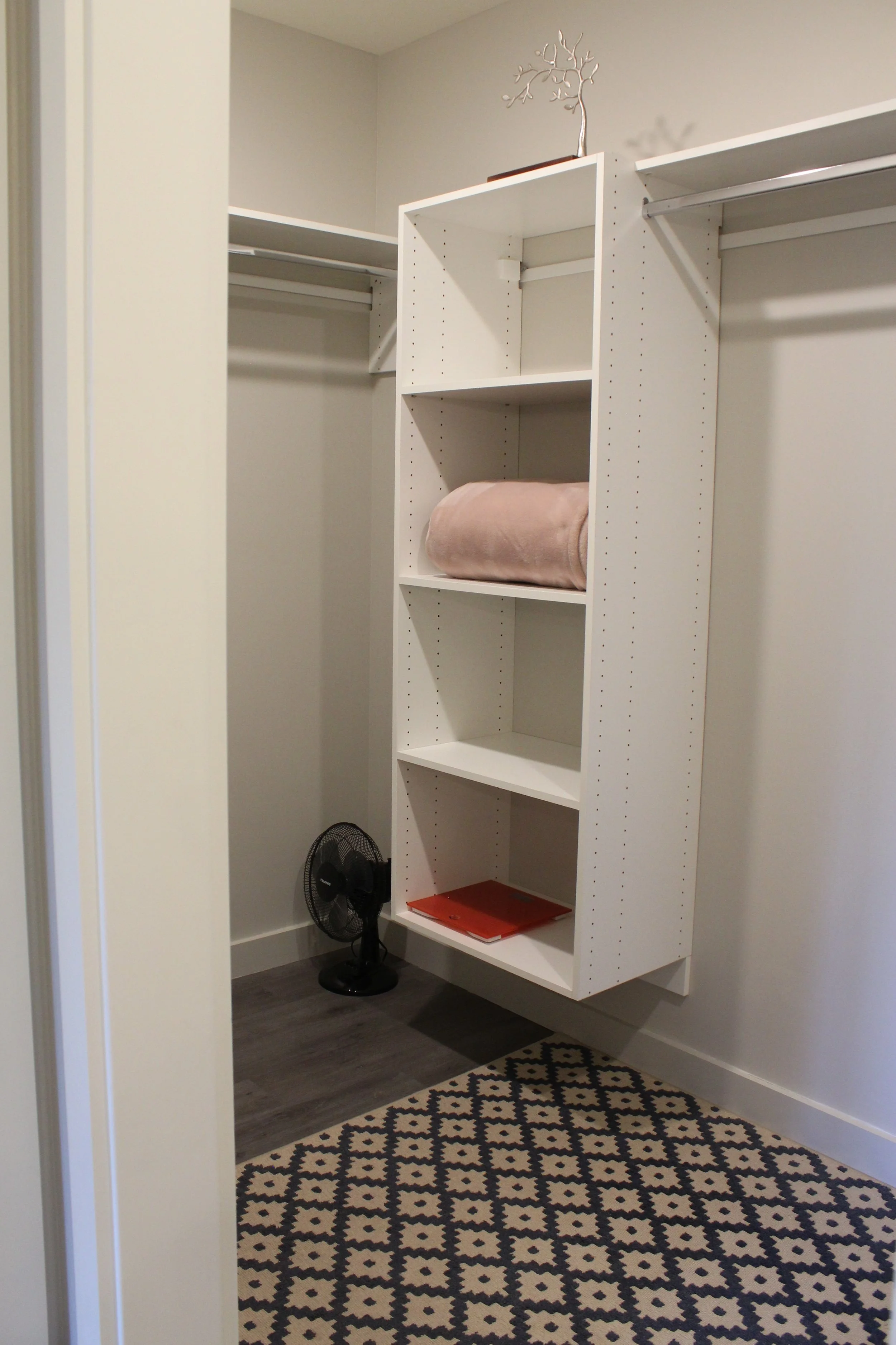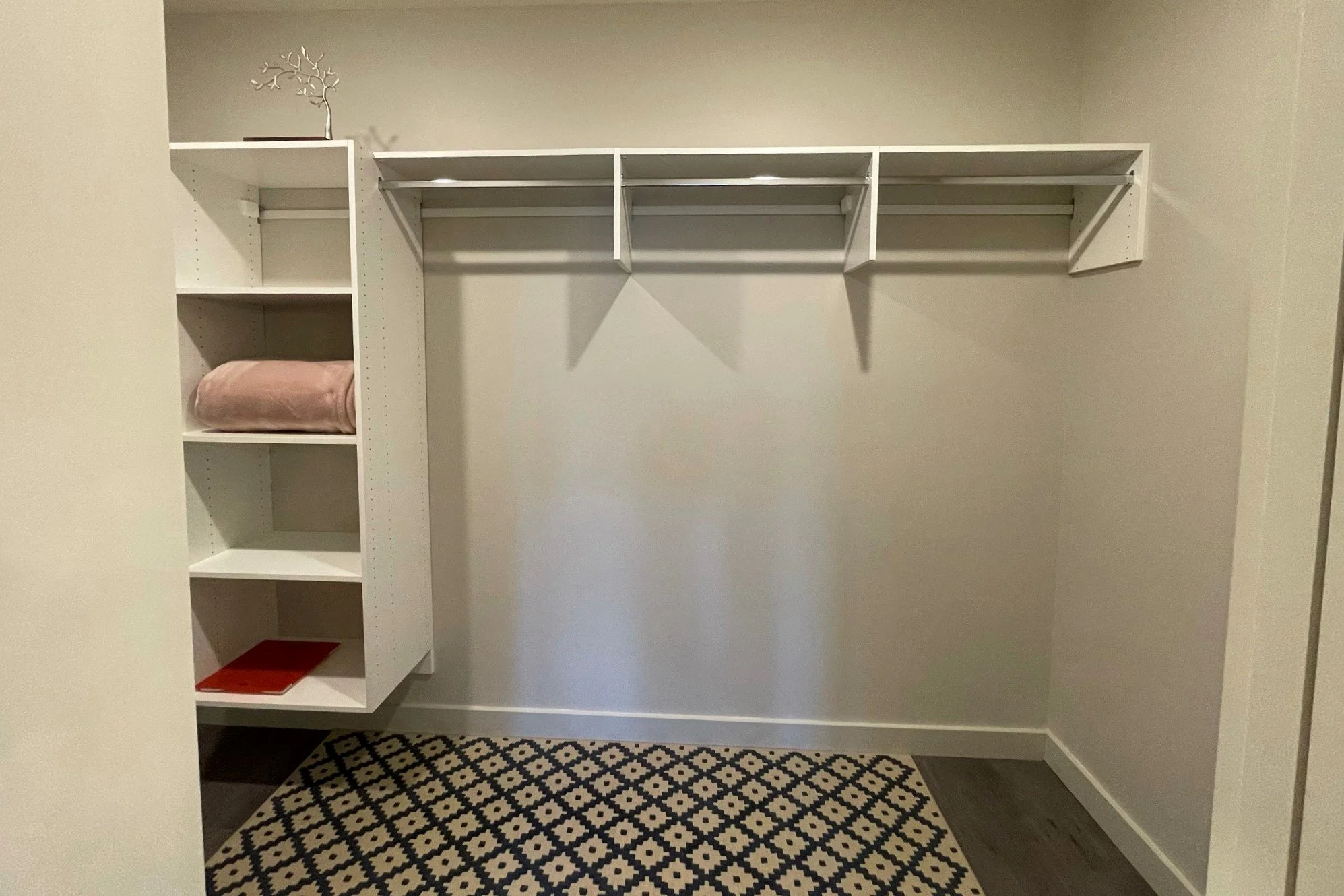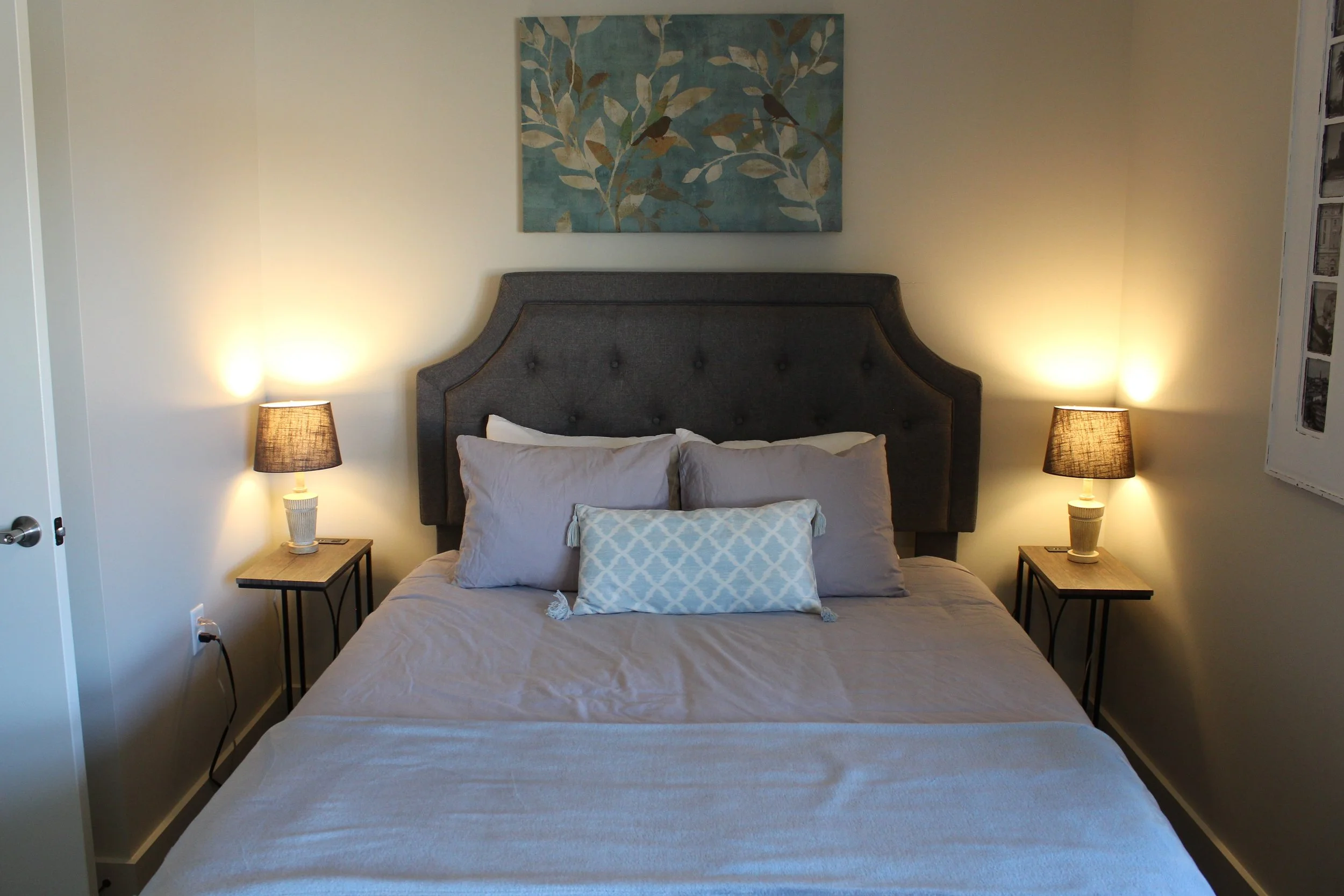 There’s a private en-suite bathroom with double vanity and walk-in shower. There’s also a large walk in closet and beautiful West facing windows with blackout curtains.